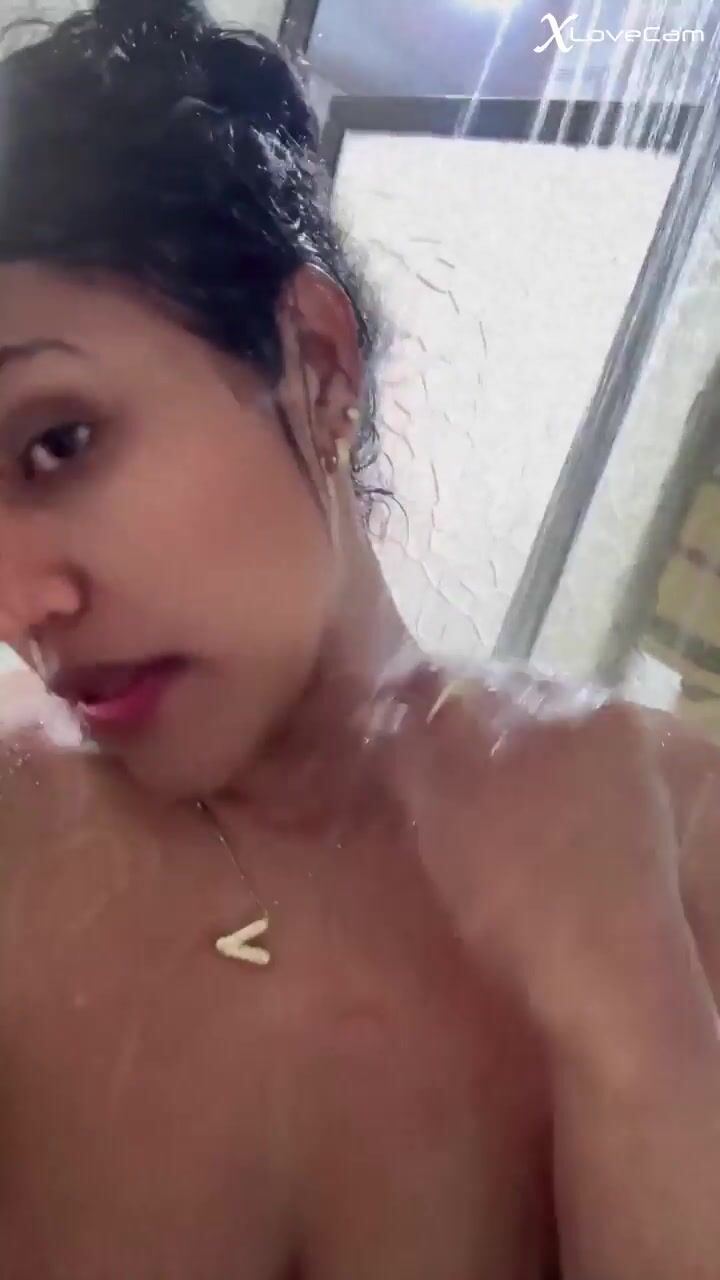 brunette showering